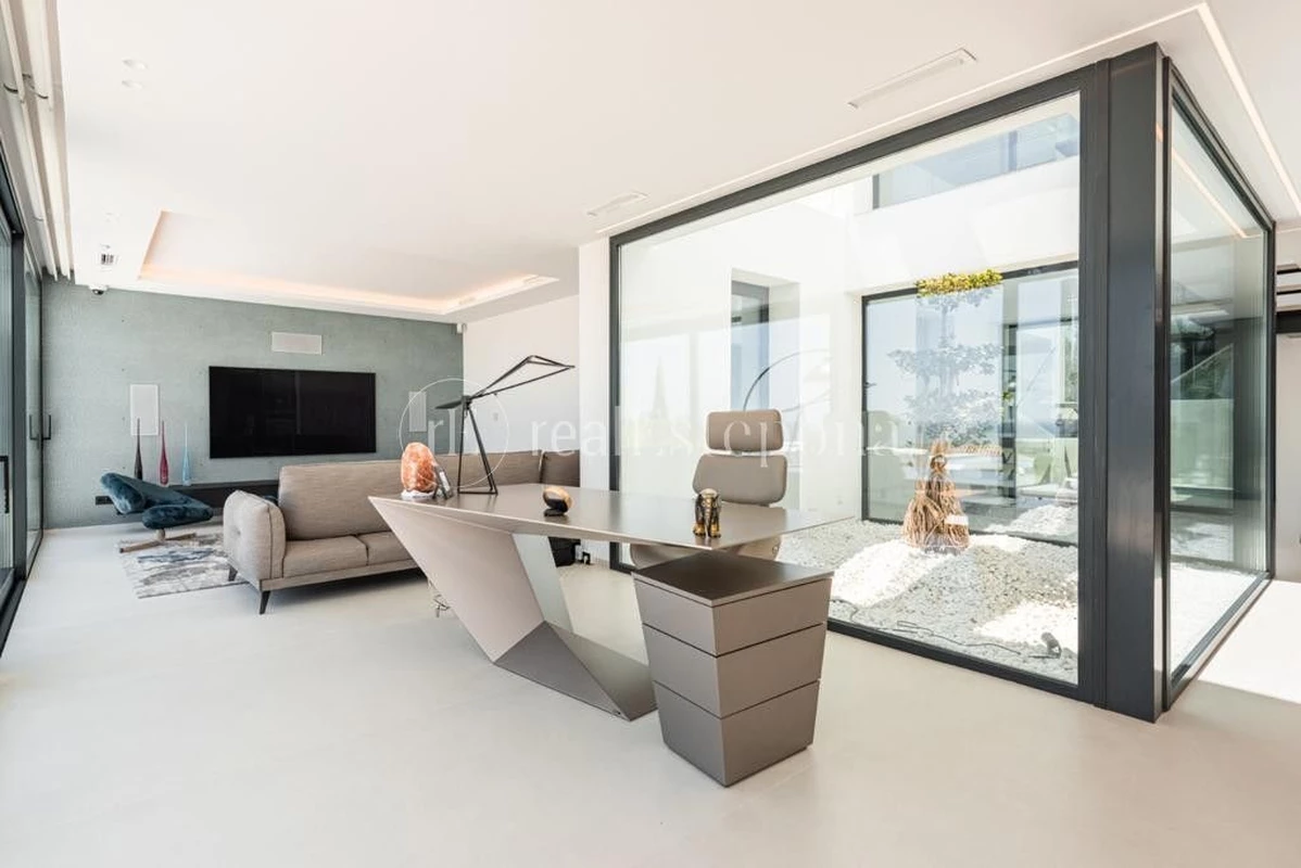 Impressive villa in El Paraíso Alto a residential community, an ideal place to enjoy tranquility and luxury. The property offers large outdoor areas where you can enjoy privileged views of the Mediterranean Sea. The villa is recently built, completed in 2023 and has a modern open-concept design, which includes high ceilings and large windows, allowing light to flood into each of the rooms. On the ground floor: entrance hall with a spacious living room with dining area and kitchenette, as well as a bedroom and a toilet. This floor has access to the terrace where there is an outdoor kitchen, a solarium and a private pool. The first floor has three en-suite bedrooms and large dressing rooms. All bedrooms enjoy an unbeatable panoramic view of the Mediterranean Sea. The villa has a very large basement, with 3 additional bedrooms, with a parking area for several cars, a large area with a SPA and a gym, and an impressive private club with a discotheque and a cinema room. The villa has a total of 1,019 m2 built, distributed on a 1,495 m2 plot. The plot has three different entrances, one of which allows access to a totally independent apartment for the staff. The systems of the house can be controlled by "Illusion" a home automation system in a very intuitive way, the villa has been equipped with: sound equipment throughout the house, interior and exterior led lights, air conditioning and underfloor heating, as well as an elevator that connects all the floors, state-of-the-art thermal insulation, and parking system with a platform, all powered by a team of photovoltaic panels with a power of 55 KW. A unique, truly special property, both to relax and to have fun, only by visiting one can fully appreciate all its luxury and comfort.