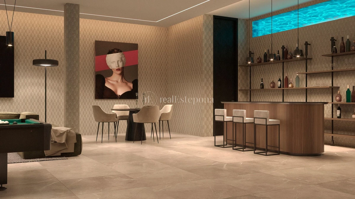 This property is spread over 3 levels. The lower floor has various areas: a spa, a fully equipped gym, a games room with a pool table, a bar and a spacious wine cellar. The spa is built using the latest micro-cementation technology and consists of an indoor, heated pool, a Finnish sauna and a Turkish bath.