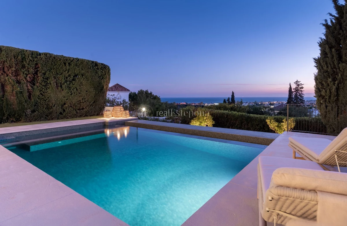 Located in the prestigious residential area of El Paraíso Alto, Benahavís, this beautifully renovated luxury villa offers spectacular panoramic views of the Mediterranean Sea and Gibraltar. Set on a private south-west facing plot, the property combines contemporary elegance with the relaxed lifestyle of the Costa del Sol.