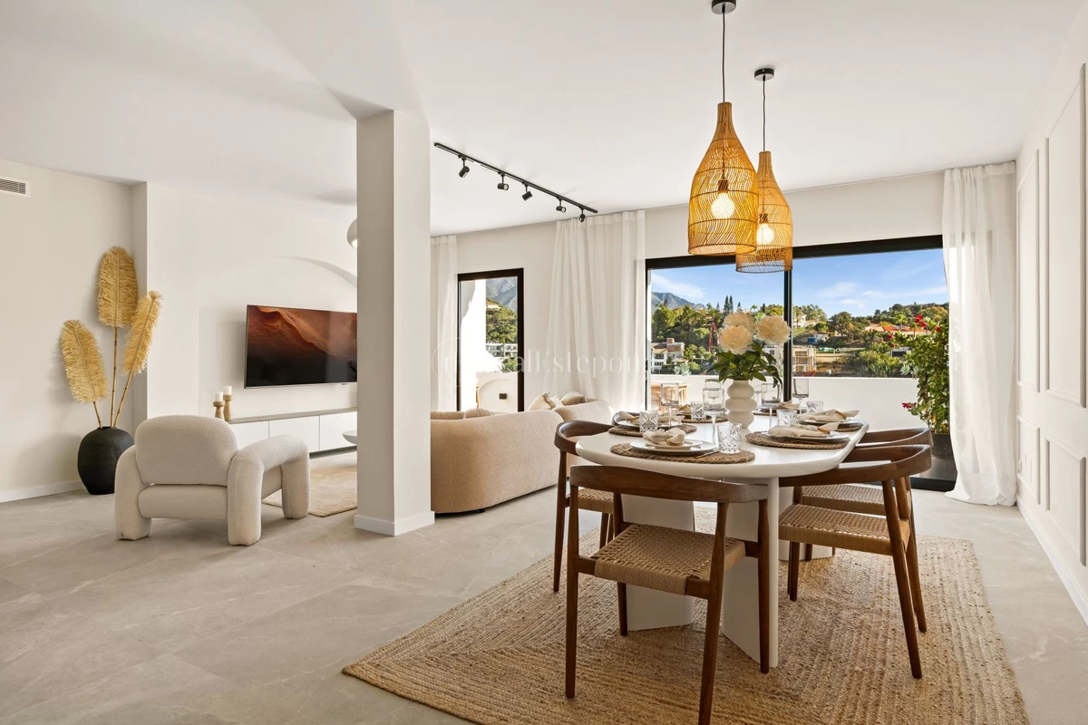 Nestled in a quiet residential area of La Quinta, this exquisitely renovated three-bedroom apartment blends contemporary elegance with comfort and panoramic scenery. Just moments from the renowned La Quinta Golf Club, along with a 5-star spa and a state-of-the-art fitness center, it delivers an exceptional lifestyle in one of Marbella’s most desirable areas.