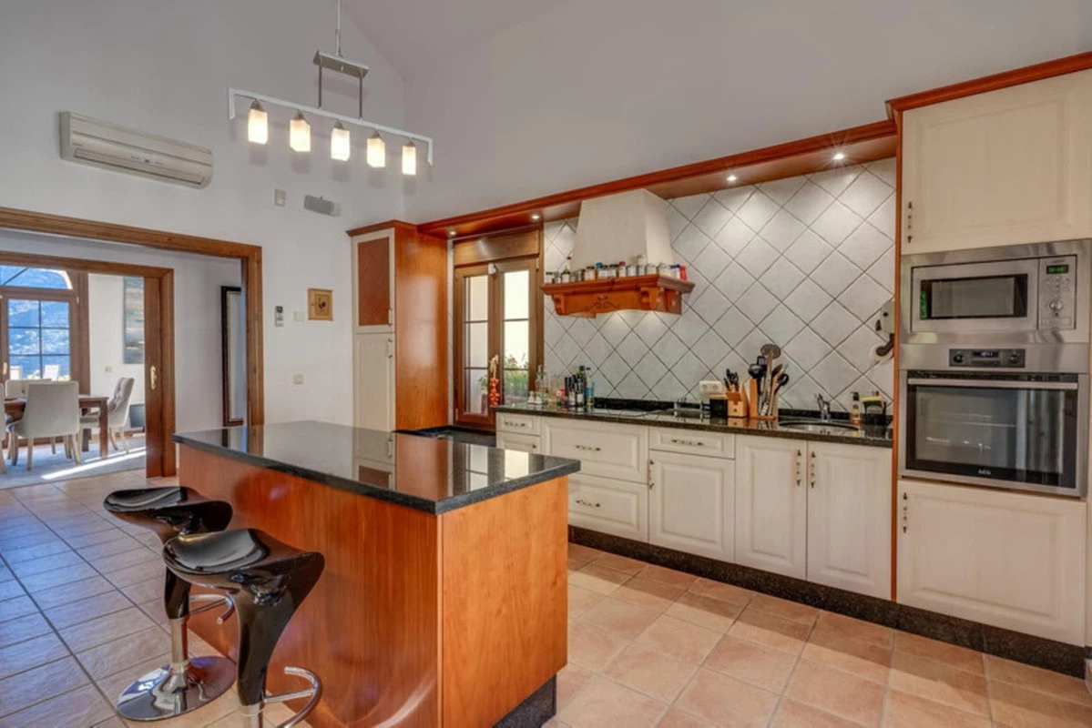 Mansion for sale in Monte Mayor, Costa del Sol, with impressive views of the sea, mountains, golf courses and forest. The total area of ​​the mansion is 590 m², 5 bedrooms, 6 bathrooms, 3 integrated and fully equipped kitchens.