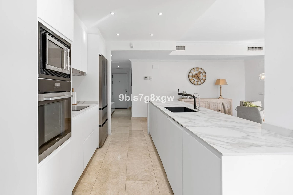 This superb 127m² ground-floor apartment offers an exceptional lifestyle where indoor and outdoor living blend seamlessly. Two spacious terraces totaling 78m², partly covered for year-round enjoyment, open directly onto the garden while offering open views of the Mediterranean and Gibraltar, a rare combination at garden level.