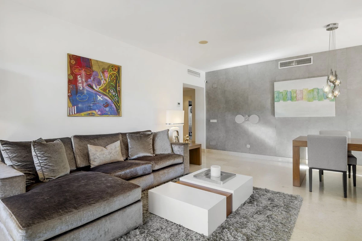 This elegant ground floor apartment for sale in Capanes del Golf, Benahavís offers an exceptional lifestyle in one of the most prestigious gated communities on the Costa del Sol. The property features two spacious bedrooms, two bathrooms and a guest toilet, combining comfort, privacy and functionality.