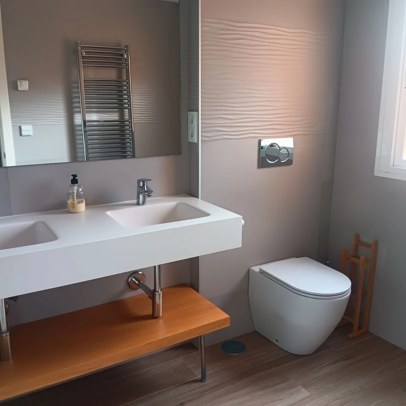 Hot and cold air conditioning throughout along with a fireplace in the living room, high quality finishes, home demotics system is also installed providing maximum comfort and security. Private covered parking in front of the property with space for two cars.