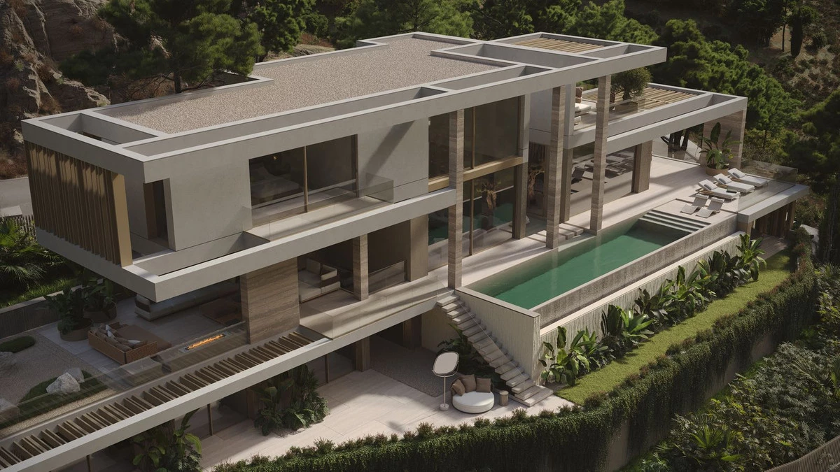 The villa will offer 647 m² of built area on a generous 2,167 m² plot, distributed to maximize space, light, and privacy. It features 5 spacious bedrooms and 7 bathrooms, complemented by four terraces that create seamless indoor-outdoor living. A private swimming pool and landscaped outdoor areas complete the exterior.